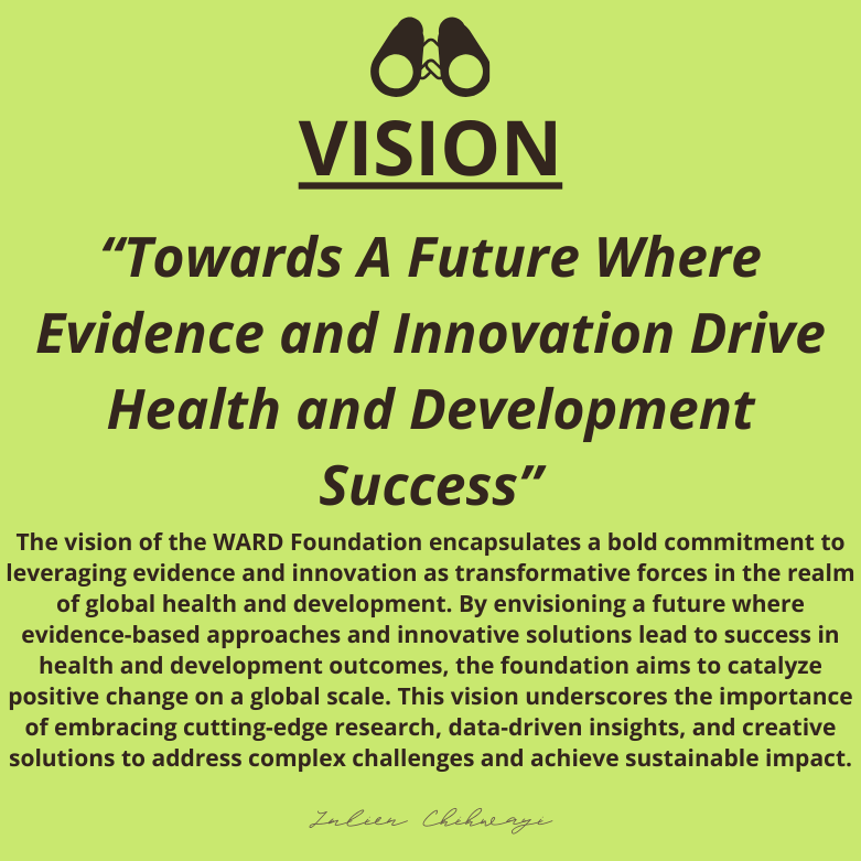 Founded in 2016, The WARD Foundation is a leading non-profit organization dedicated to driving impactful change in global health and development through evidence-based strategies and innovative approaches. Established with a vision to create a future where evidence and innovation lead to sustainable health and development success, the foundation focuses on research, advocacy, capacity strengthening, and community systems strengthening across various thematic areas.